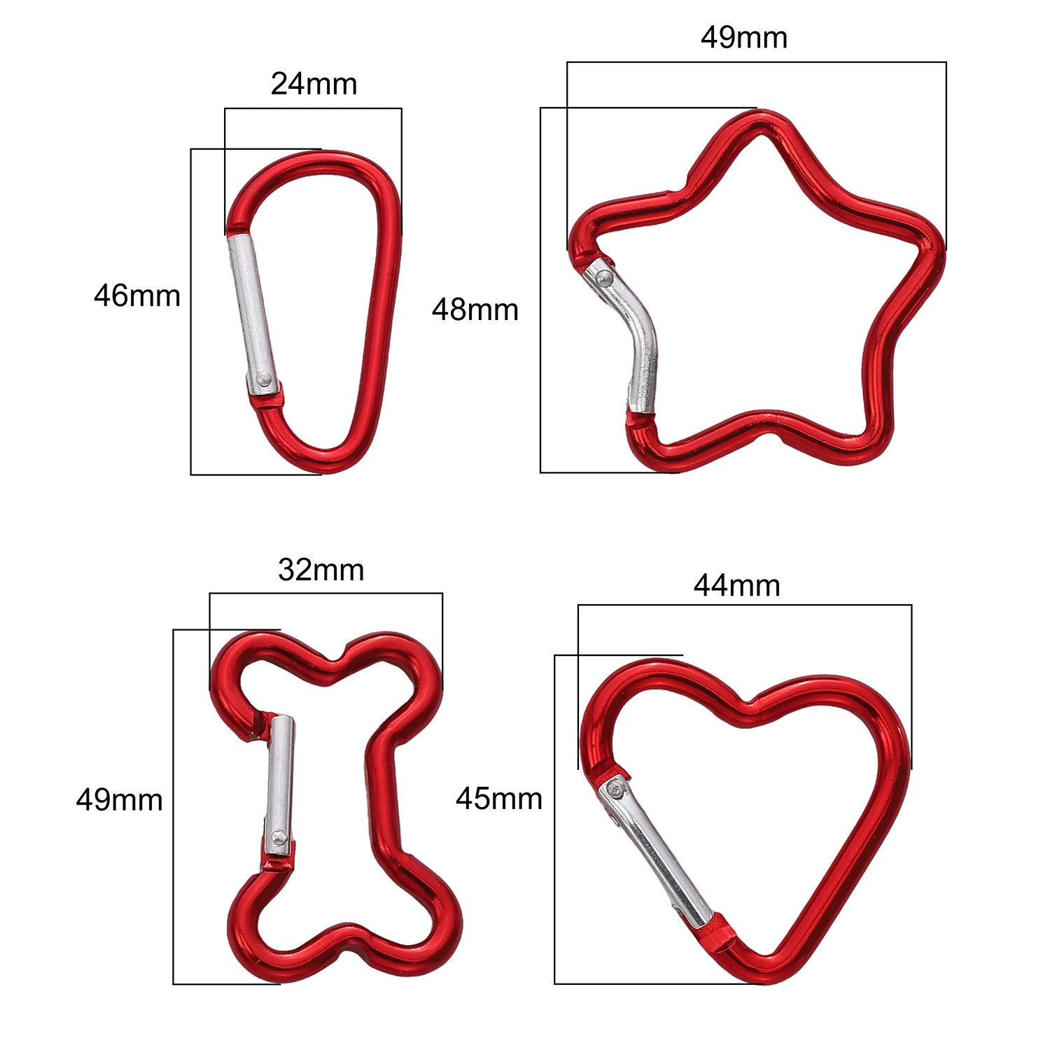 This multifunction carabiner keychain clip is a practical and stylish everyday accessory. Made from durable aluminum, it is lightweight yet strong for daily use. The secure locking clasp helps keep your keys and small items safely attached. Available in unique shapes like star, heart, classic, and bone, it adds a fun design element. It is perfect for attaching keys, small tools, or accessories to bags and belts. The compact size makes it easy to carry without adding bulk. This carabiner is ideal for camping, hiking, travel, and everyday organization. The smooth finish ensures comfortable handling and durability. Keep your essentials organized and accessible with this versatile carabiner keychain clip.