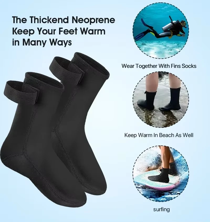 These neoprene water sport socks provide comfort and protection during water activities. Made from durable 3mm neoprene material, they help keep your feet warm in cold water. The flexible design allows natural movement while swimming or walking. Sand-proof construction helps prevent sand and small debris from entering the socks. They are ideal for beach volleyball, swimming, diving, and snorkeling. The snug fit improves comfort and prevents slipping during activity. Lightweight and easy to pack, they are perfect for travel and outdoor adventures. The durable material provides extra protection for rocky or rough surfaces. These water socks can be worn alone or inside water shoes for added comfort. Enjoy better foot protection and comfort during all your favorite water sports. 🌊